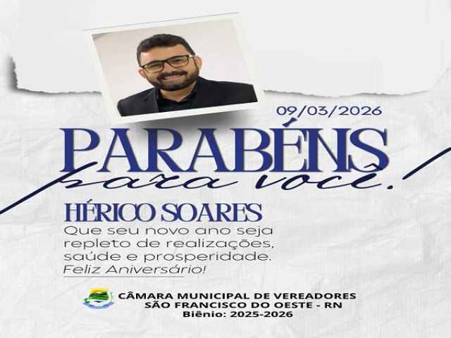 Receba os parabéns de todos que fazem parte da Câmara Municipal de São Francisco do Oeste, que este seja apenas o começo de um novo ciclo próspero e repleto de realizações!